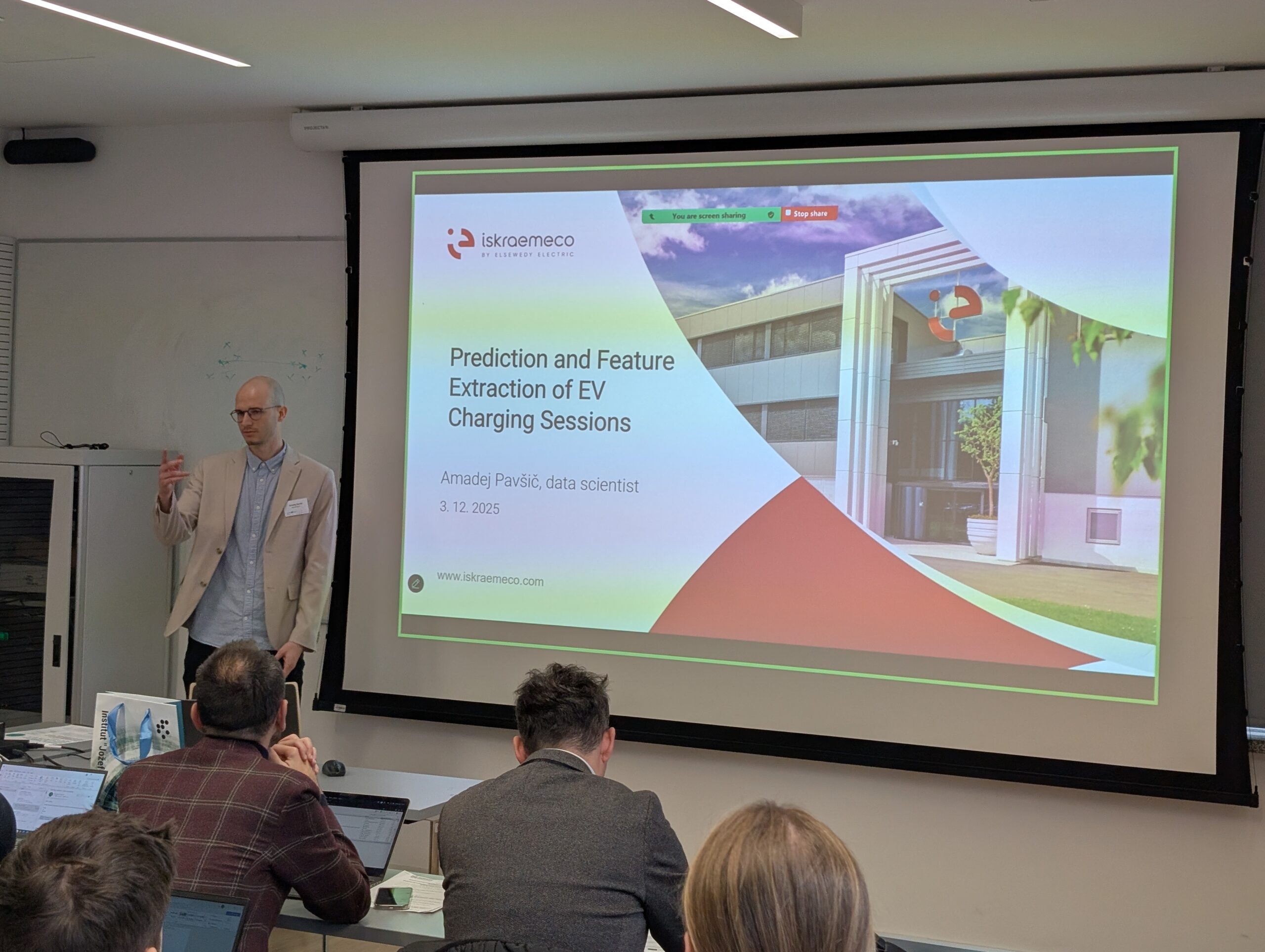 Amadej Pavšič, Independent Development Engineer, presented Iskraemeco’s research on forecasting electric-vehicle (EV) charging sessions. As EV adoption increases, understanding and predicting charging behavior is becoming an important element of grid planning.